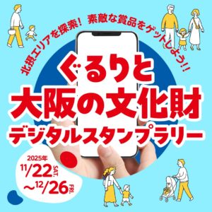 【お知らせ】デジタルスタンプラリーに参加しています 当館では、「ぐるりと大阪の文化財デジタルスタンプラリー」に参加しています。 集めたスタンプの数ごとに素敵な賞品のご用意があり、期間中、ご応募いただくと抽選でプレゼント。 当館では、「ワニ博士」の木のしおりやステッカーも配布中です。 (※なくなり次第終了・「木のしおり」は、当館のスタンプを提示して頂いた方に配布) 期間:2025年11月22日(土)~12月26日(金) ※休館日につきましては当館HPにてご確認のうえ、お越しください。 投稿日:2025年11月22日(土)